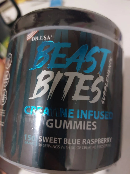 Las Beast Bites tienen un delicioso sabor a frambuesa azul dulce con un toque de hibisco, similar a las clásicas gomitas de frutas.